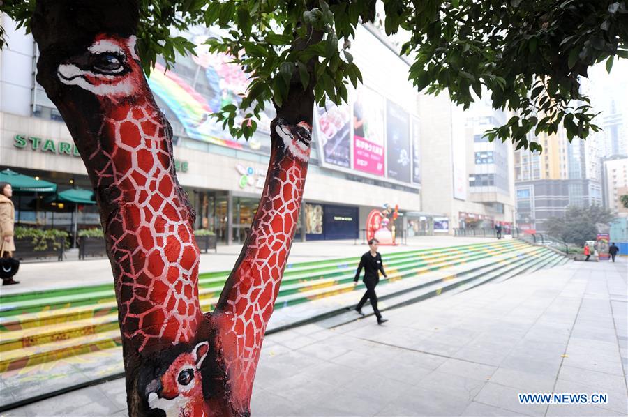 Un hombre camina por la primera calle temática del arte del graffiti en Chongqing, el 5 de enero de 2016. (Xinhua/Tang Yi)