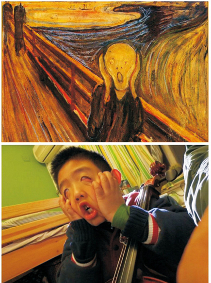 Hangzhou,11/01/2016(El Pueblo en Línea)-Una serie de fotos de pinturas famosas y sus imitaciones realizadas por estudiantes de primaria se han convertido en un fenómeno viral en las publicaciones de WeChat.