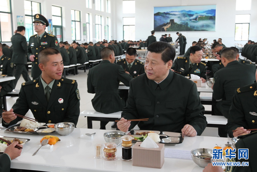 Xi Jinping almuerza con soldadados (Xinhua)