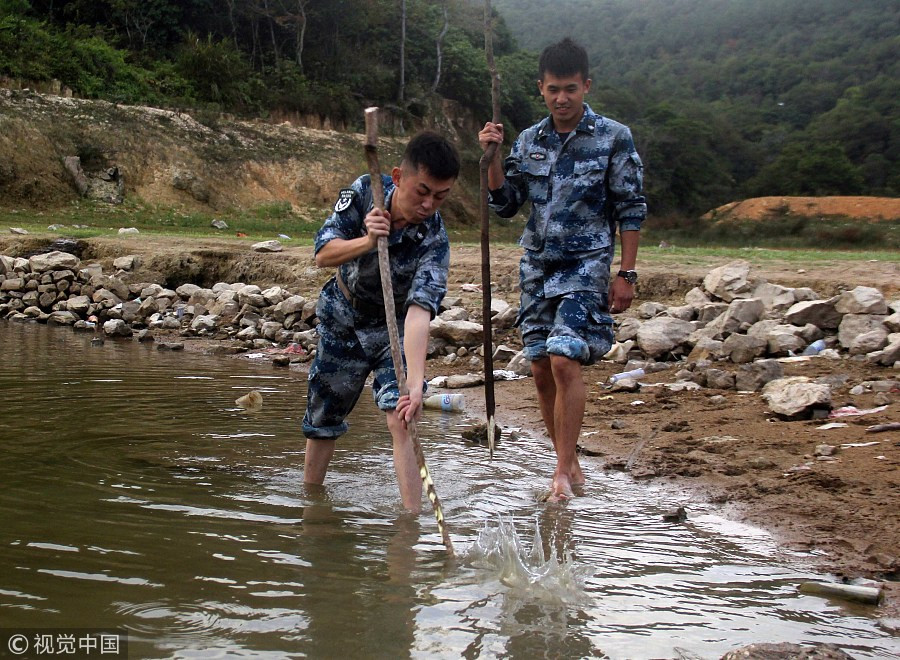 Estudiantes construyen sus propias herramientas para atrapar peces. [Foto: VCG]