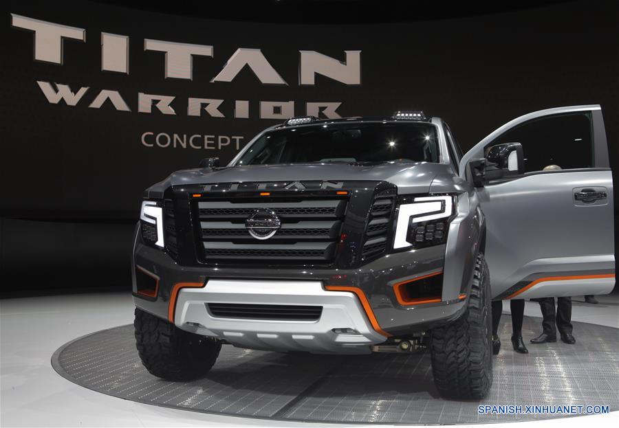 Foto tomada el 12 de enero 2015 muestra un prototipo de automóvil Nissan Titan Guerrero en el Salón del Automóvil Internacional de Norteaméricaen Detroit, Estados Unidos.(Xinhua / Liu Bowen)
