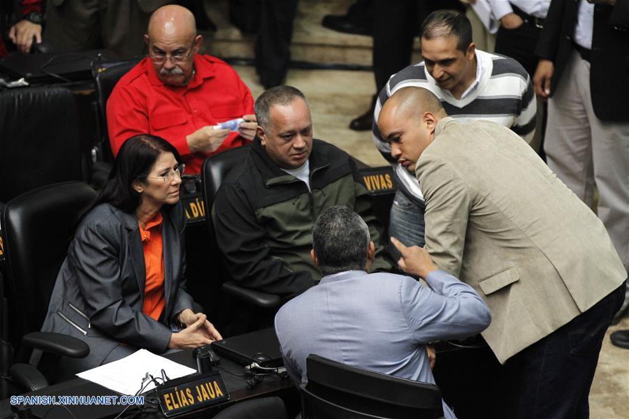 Diputados discuten durante una sesión de la Asemblea Nacional (AN, Congreso) en Caracas, Venezuela, el 13 de enero de 2016. (Xinhua/Pedro Mattey/AVN)