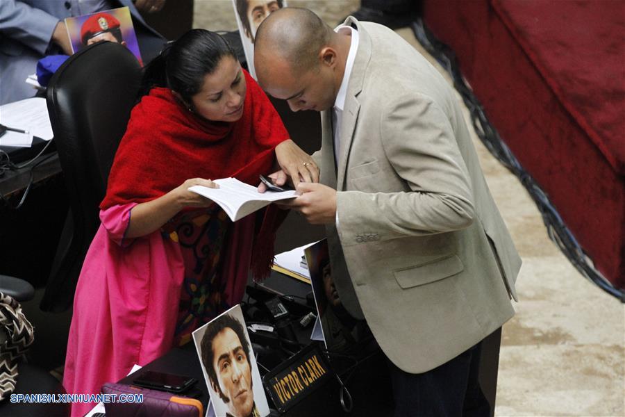 Diputados discuten durante una sesión de la Asemblea Nacional (AN, Congreso) en Caracas, Venezuela, el 13 de enero de 2016. (Xinhua/Pedro Mattey/AVN)