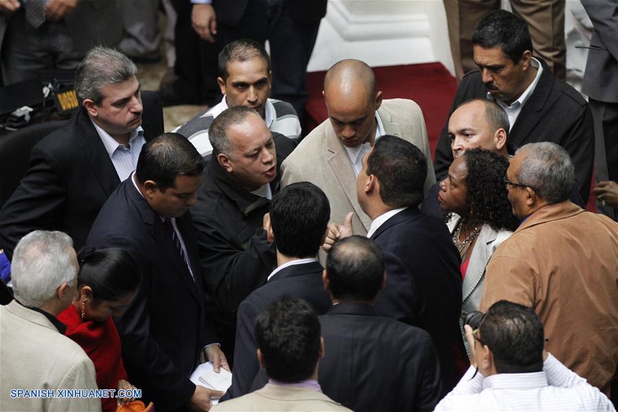Diputados discuten durante una sesión de la Asemblea Nacional (AN, Congreso) en Caracas, Venezuela, el 13 de enero de 2016. (Xinhua/Pedro Mattey/AVN)