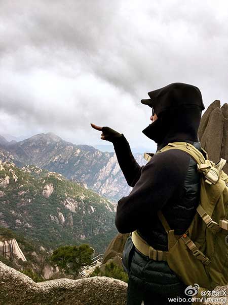 Durante el festival Laba, Liu Xiang y Wu Sha escalaron la monta?a Huangshan en la provincia de Anhui. [Foto: Sina Weibo]