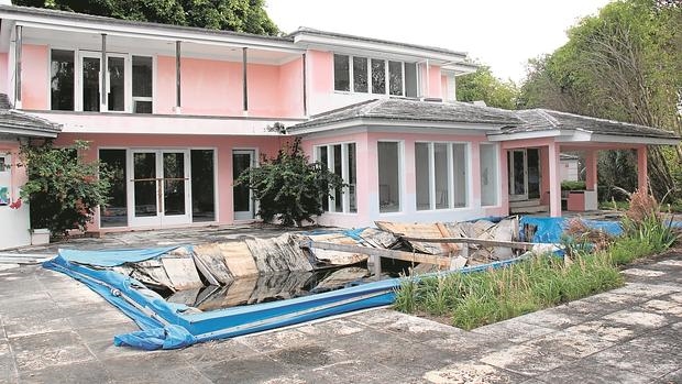 La casa, muy deteriorada tras a?os de abandono, se encuentra en una finca de casi 700 m2 en North Bay Road, una acomodada zona que da a la bahia Vizcaina. Sus ajadas paredes en rosa pastel, la piscina llena de escombros y un embarcadero de madera apenas reflejan ya el rutilante tren de vida del gran magnate de la droga de los a?os 80. La vivienda, construida en 1948, cuenta con cuatro dormitorios y seis ba?os repartidos en dos pisos, ademas de un garaje contiguo. Grafitis y restos de algun incendio le dan ahora un aspecto decadente. El jardín lo preside un enorme y frondoso baniano centenario, que será lo único que se salve de la acción de las excavadoras.