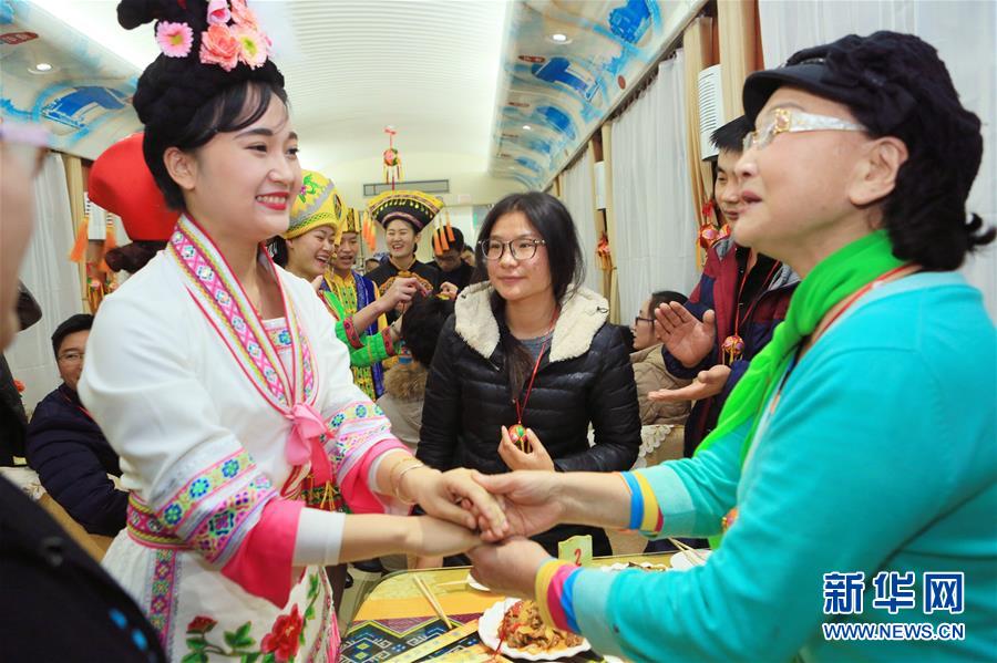 Imagen 2: El 24 de enero, trabajadoras del tren vestidas con trajes típicos cantan a los pasajeros.