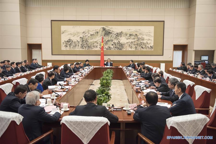 El primer ministro chino, Li Keqiang, preside un simposio para solicitar opiniones acerca del proyecto de informe anual sobre la labor del gobierno y del XIII Plan Quinquenal del país, en Beijing, capital de China, 25 de enero de 2016. Li presentará en marzo el informe final sobre la labor del gobierno en la sesión anual de la Asamblea Popular Nacional .(Xinhua / Li Xueren)