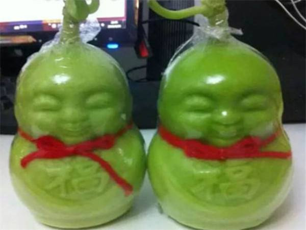 Los frutos se cultivan dentro de un molde para que adquieran la forma deseada. Además de las formas del “dios de la riqueza”, las frutas modeladas a imagen y semejanza del “dios de la longevidad” y el “Buda Maitreya” también se venden muy bien en los comercios de Vietnam.