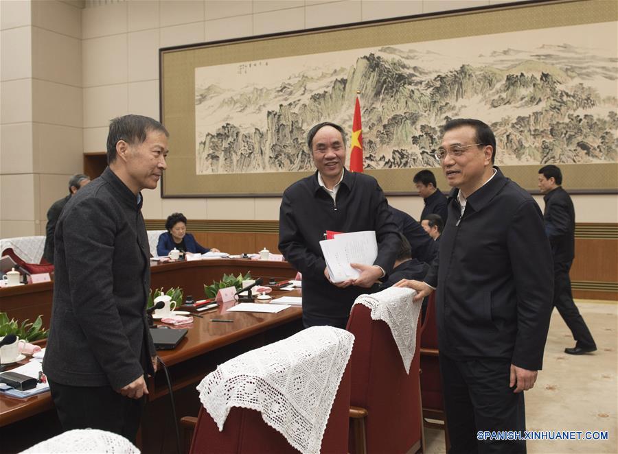 El primer ministro chino Li Keqiang preside un simposio para pedirmás apoyo financiero para la modernización industrial en un momento en el que el país se esfuerza por reestructurar su economía en Beijing, capital de China, 25 de enero de 2016. Li presentará en marzo el informe final sobre la labor del gobierno en la sesión anual de la Asamblea Popular Nacional. (Xinhua / Li Xueren)