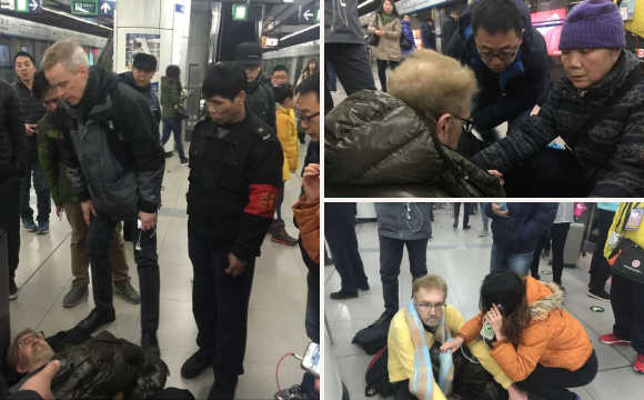 Beijing,01/02/2016(El Pueblo en Línea)- El jueves por la ma?ana, muchos pasajeros del metro de Beijing auxiliaron a un extranjero que se desmayó en una estación de metro de Beijing.
