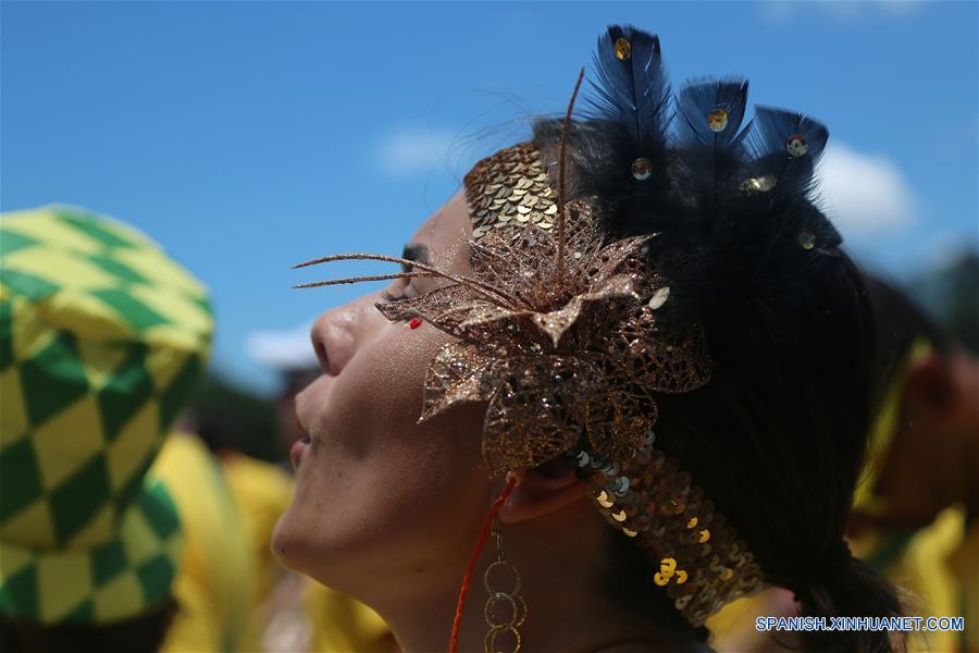 SAO PAULO, 1 feb (Xinhua) -- Una persona actuaba en el desfile de "Monobloco" durante los festivales de Carnaval en Sao Paulo, Brasil, el 31 de enero. (Xinhua/Rahel Patrasso)