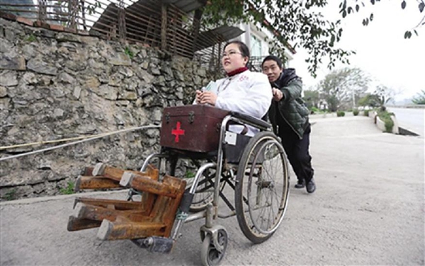 Una médico minusválida atiende pacientes en una zona monta?osa de Chongqing