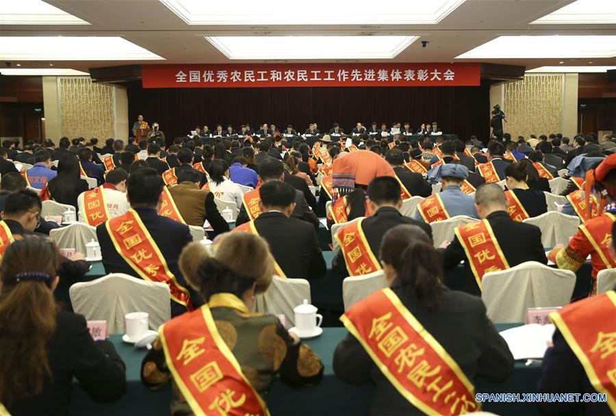 Una ceremonia nacional en honor a 981 trabajadores migratorios y de 100 grupos se llevó a cabo en Beijing, capital de China, 1 de febrero de 2016. (Xinhua/Ma Zhancheng)