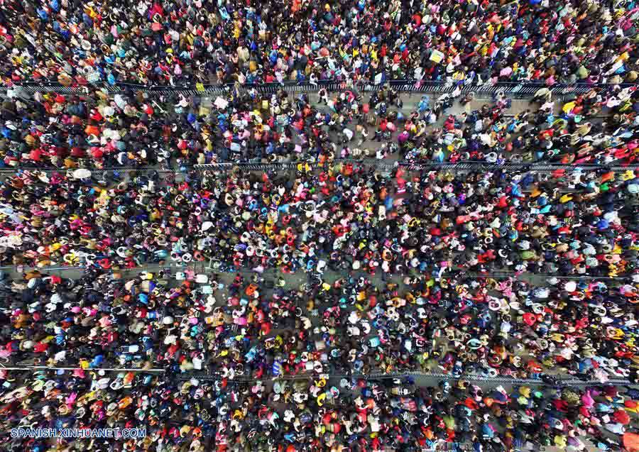 Miles de pasajeros atrapados en estación de ferrocarril de Guangzhou. (Xinhua/Liu Dawei)