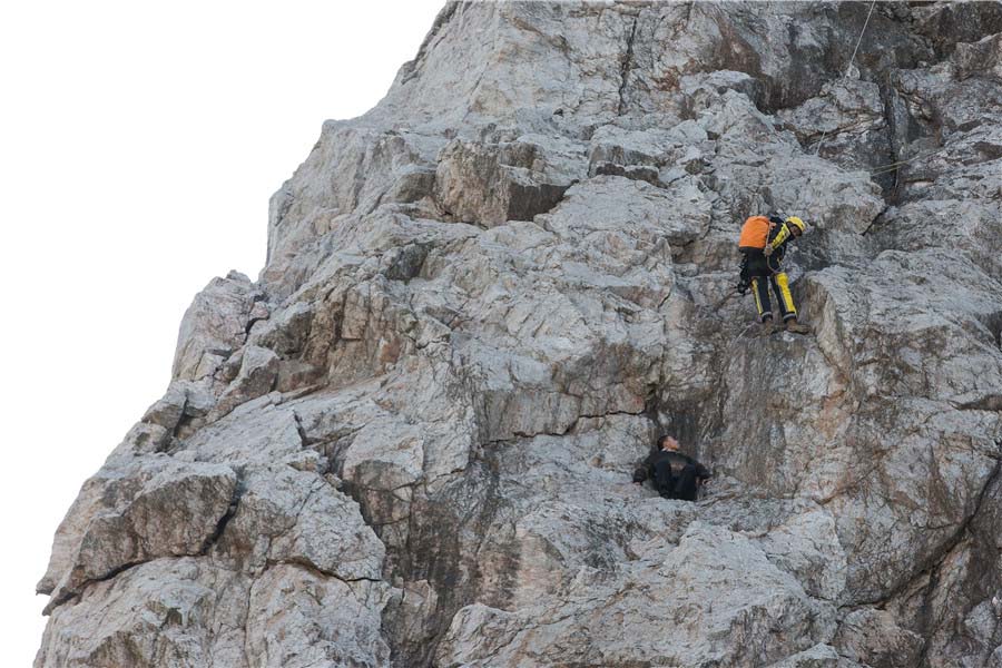 Policía de Hangzhou rescata a un hombre que quedó atrapado en un acantilado el 18 de febrero.