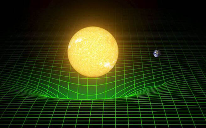 Una simulación por ordenador muestra cómo el Sol y la Tierra deforman el espacio y tiempo, o espacio-tiempo, representado aquí con una rejilla verde en esta imagen publicada en Washington el 11 de febrero de 2016. [Foto/Agencias]