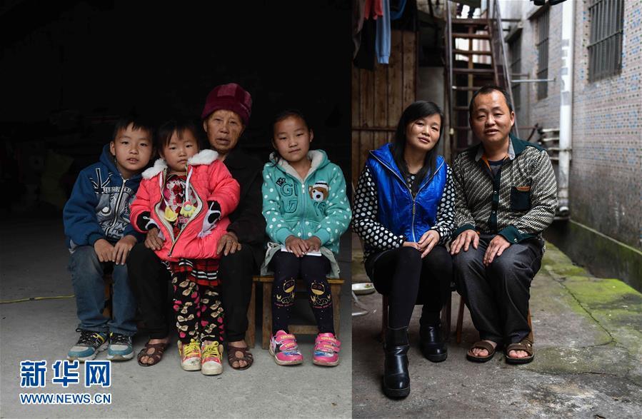 Beijing,26/02/2016(El Pueblo en Línea)-La foto doble muestra al padre Wei Guifu y a la madre Meng Ailin en su apartamento de alquiler en ciudad de Fenggang, Dongguan, provincia de Guangdong, y a sus hijos y la abuela en la aldea de Nonghe, en Guangxi, el 22 de febrero. (Foto de Xinhua)