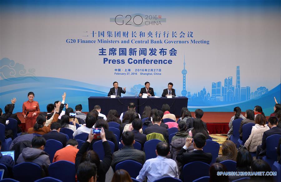 SHANGHAI, 27 feb (Xinhua) -- La Reunión de Ministros de Hacienda y Gobernadores de Bancos Centrales del G20 se claururó en Shanghai. (Xinhua/Li Xi)
