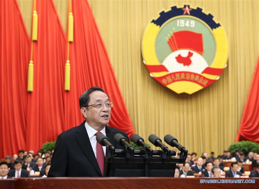 El presidente del Comité Nacional de la Conferencia Consultiva Política del Pueblo Chino (CCPPCh), Yu Zhengsheng, habló ante los 2.200 miembros que asistieron a la reunión en el Gran Palacio del Pueblo.