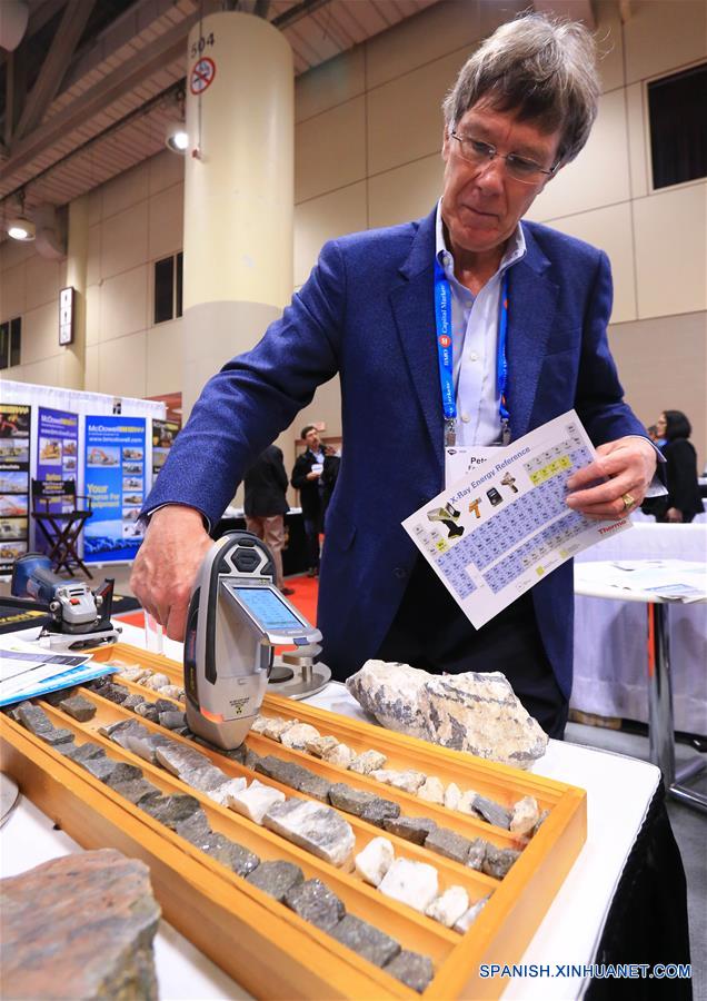 Los visitantes observanmuestras de mineraldurante laPDAC 2016,la conferenciaanual de cuatro díascomenzó eldomingo. (Xinhua/Zou Zheng)