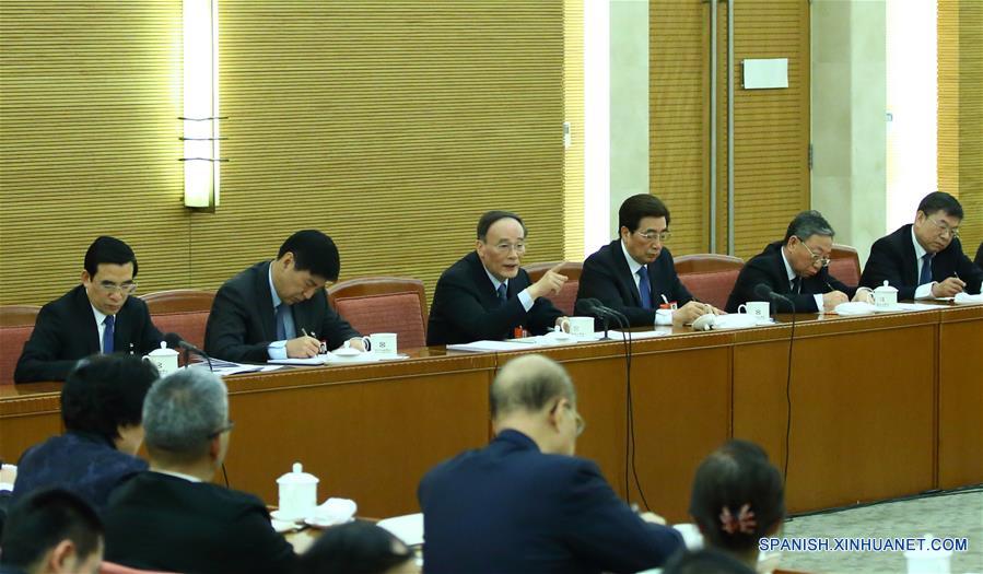 Wang Qishan, el secretario de la Comisión Central de Control Disciplinario del PCCh, habla en deliberaciones con diputados de Beijing de la APN en Beijing, capital de China, 6 de marzo de 2016. (Xinhua / Ding Haitao)