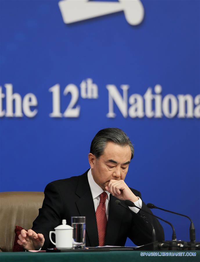 El canciller chino, Wang Yi da una conferencia de prensa celebrada en Beijing en paralelo a la sesión anual de la Asamblea Popular Nacional en Beijing, capital de China 8 de marzo de 2016.(Xinhua/Li Xin)