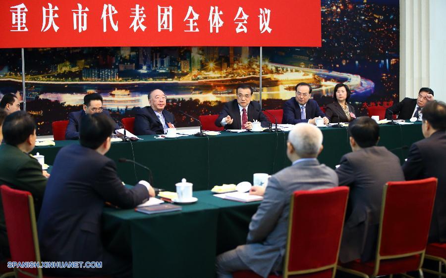El primer ministro de China, Li Keqiang, participa en un debate con legisladores de Chongqing, en Beijing, capital de China, el 8 de marzo de 2016. (Xinhua/Ding Haitao)