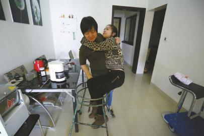 La madre de Yu Bin le ayuda a desplazarse por la casa. (Foto: www.wccdaily.com.cn)