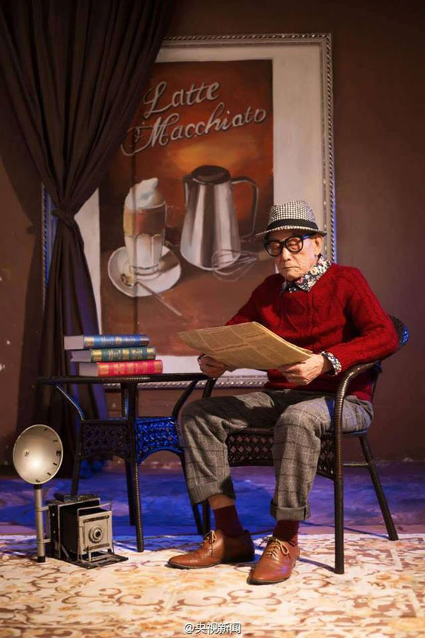 Ma Zhiying, de 96 a?os, estimulado por su nieta ha decidido posar para una sesión de fotos muy postmodernas. Su actitud y maneras lo han convertido en un icono de la moda en China. Ma es veterano de la guerra de liberación del pueblo chino contra el invasor japonés. Se unió al ejército en 1936 y participó en numerosas batallas. [Foto: weibo.com]