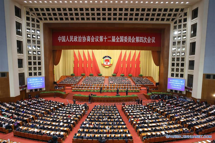 El XII Comité Nacional de la Conferencia Consultiva Política del Pueblo Chino (CCPPCh), el máximo órgano asesor político del país, inició el lunes la reunión de clausura de su sesión anual en Beijing, capital de China, 14 de marzo de 2016. (Xinhua / Pang Xinglei)