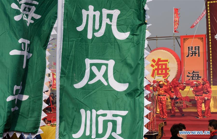 El pueblo asiste a una bendición ritual para la abundante pesca y la buena suerte de los pescadores que salen hacia alta mar en Jiegou, Panjin, provincia de Liaoning, 15 de marzo de 2016. En Jiegou, el río de la zona desemboca en el mar. Durante la ceremonia los pescadores rezan y piden protección antes de comenzar a navegar. (Foto: Li Gang)