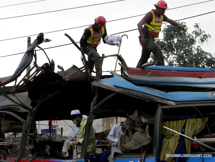La explosión ocurrió cerca de las 8:15 hora local cuando el autobús, con unos 40 empleados de una secretaría provincial a bordo, viajaba desde el distrito vecino de Mardan, ubicado a unos 50 kilómetros de Peshawar, a sus oficinas en esta ciudad capital de la provincia de Khyber Pakhtunkhwa, según informó el secretario de información de la provincia, Mushtaq Ghani.