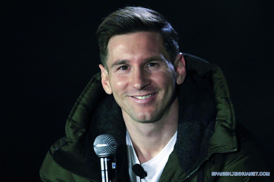 Delantero argentino del FC Barcelona Lionel Messi asiste a una conferencia de prensa en la que Huawei anuncia el nombramiento de Messi como embajador de la marca más reciente de la compa?ía Global en Barcelona, Espa?a, 17 de marzo de 2016. (Xinhua / Pau Barrena)