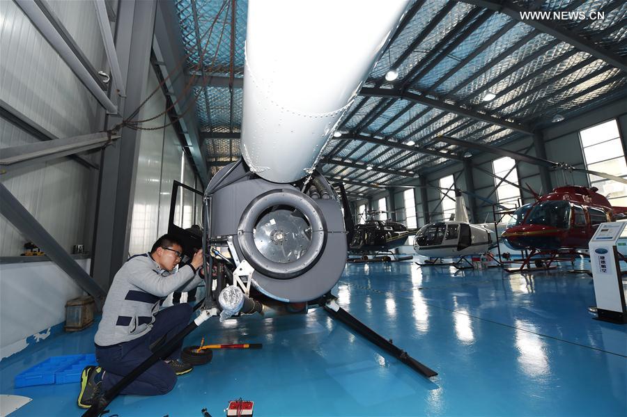 Helicóptero estacionado en el Centro Yida de la Companía Shanghai Dynamic Aero Tech (GDAT), un almacén 5S para aeronaves ubicado en la zona portuaria de Meishan, en Ningbo, provincia de Zhejiang. El almacén 5S fue inaugurado el 8 de abril del 2015. Desde esa fecha, ya ha vendido 88 helicópteros. El Centro Yida ofrece más de 20 tipos de helicópteros. Los precios oscilan entre 3 y 100 millones de yuanes (461,400-15.38 millones de dólares), 23 de marzo del 2016. (Foto: Huang Zongzhi)
