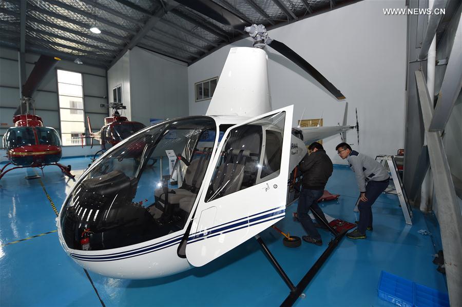 Helicóptero estacionado en el Centro Yida de la Companía Shanghai Dynamic Aero Tech (GDAT), un almacén 5S para aeronaves ubicado en la zona portuaria de Meishan, en Ningbo, provincia de Zhejiang. El almacén 5S fue inaugurado el 8 de abril del 2015. Desde esa fecha, ya ha vendido 88 helicópteros. El Centro Yida ofrece más de 20 tipos de helicópteros. Los precios oscilan entre 3 y 100 millones de yuanes (461,400-15.38 millones de dólares), 23 de marzo del 2016. (Foto: Huang Zongzhi)