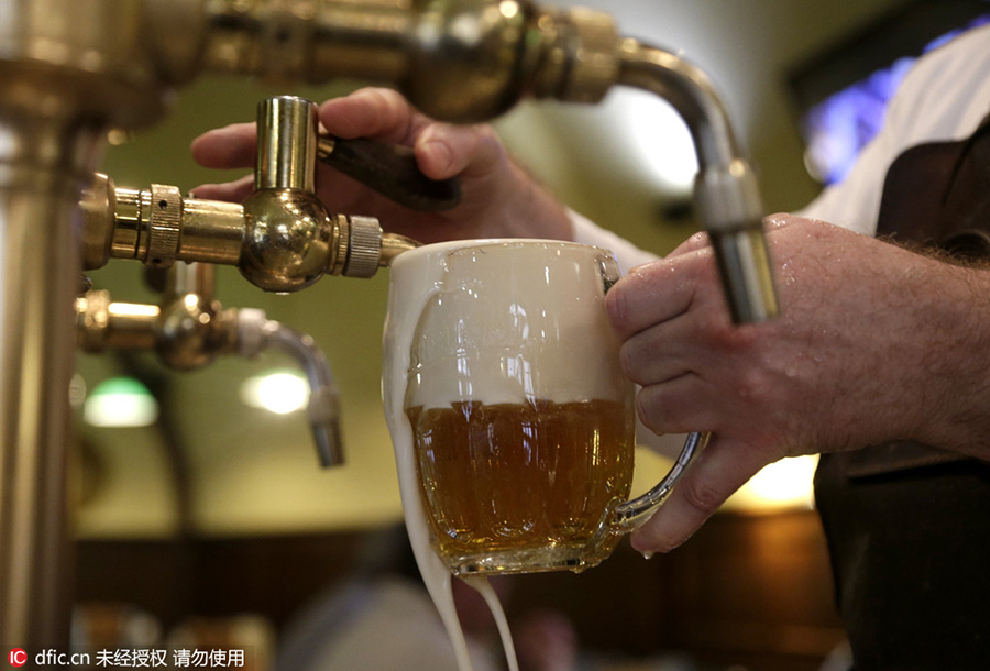 Un camarero sirve un vaso de cerveza en un bar de Praga, 2 de febrero de 2016.