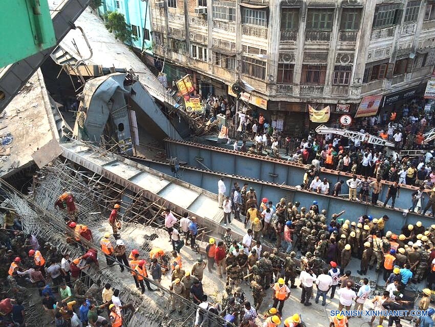 NUEVA DELHI, 31 mar (Xinhua) -- Al menos 20 personas murieron y 150 resultaron heridas este jueves a causa del derrumbe de un paso elevado en construcción en una concurrida zona de la ciudad oriental india de Calcuta, según un oficial de la policía.