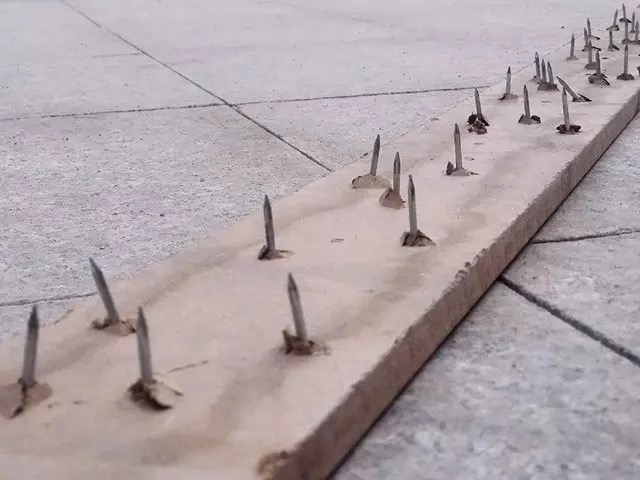Henan,06/04/2016(El Pueblo en Línea)-Filas de clavos de aceros, enfilados sobre soportes de madera, se han colocado en las inmediaciones de un centro comercial de Zhengzhou, en la provincia de Henan, con el objetivo de matener alejados a los indisciplinados chóferes que buscan aparcamiento a toda costa.