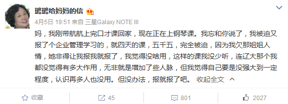 Beijing,07/04/2016(El Pueblo en Línea)- "Mamá, so?é contigo toda la noche. So?é que había vuelto a mí, sin embargo sé que te has ido ..." escribió una joven llamado Lulu en su microblog alojado en Sina Weibo.