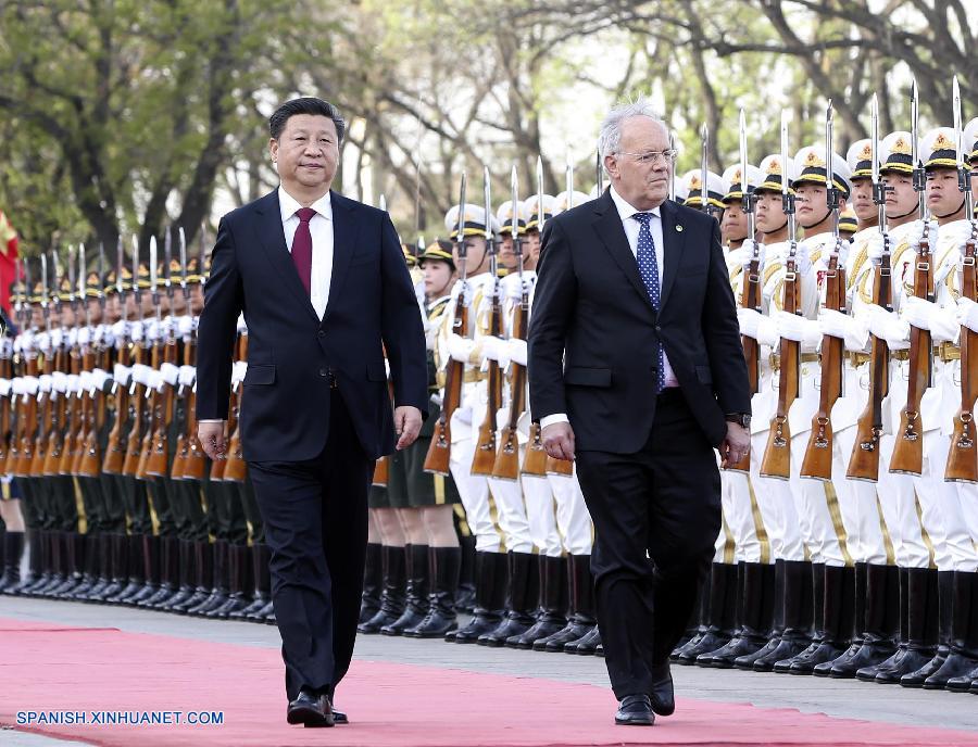 Antes de las conversaciones, Xi encabezó una ceremonia de bienvenida en honor de Schneider-Ammann en la paza exterior de la Puerta Este del Gran Palacio del Pueblo en Beijing.