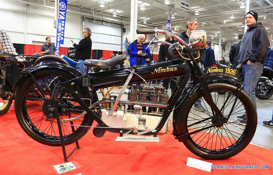 TORONTO, 11 abr (Xinhua) -- Visitantes observan una motocicleta modificada exhibida durante el Salón Internacional de la Motocicleta 2016 en el Centro Internacional de Toronto, Canadá, el 10 de abril de 2016. (Xinhua/Zou Zheng)
