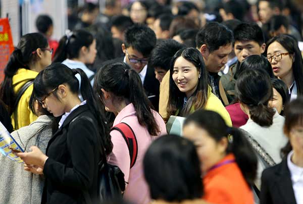 Graduados chinos interactuan con sus potenciales empleadores durante una feria de trabajo en Shenyang. Más de 4.000 jóvenes participaron en el evento. [Foto: Peng Bin]