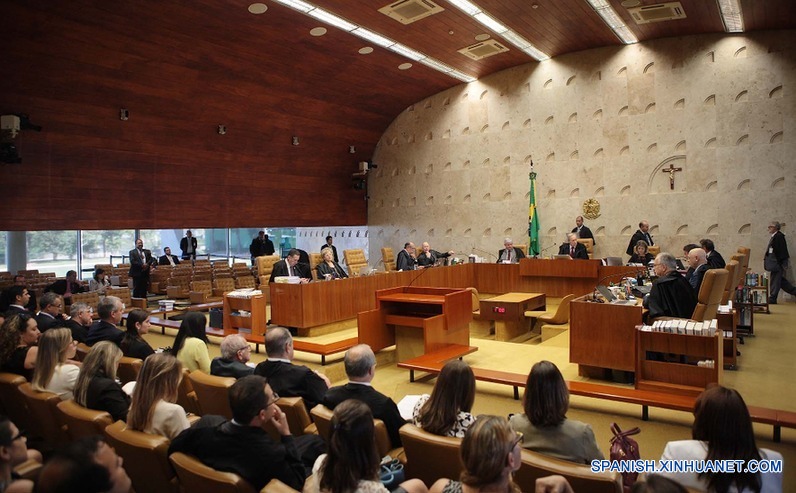 El Supremo Tribunal Federal (STF) de Brasil lleva a cabo una sesión extraordinaria para juzgar recursos relativos al proceso de "impeachment" de la presidenta brasile?a Dilma Rousseff, en Brasilia, Brasil, el 14 de abril de 2016. El STF de Brasil inició el jueves a las 18:00 hora local (21:00 GMT) una sesión extraordinaria para juzgar recursos relativos al proceso de "impeachment" de Dilma Rousseff, entre ellos un recurso de la Abogacía General de la Unión (AGU) pidiendo la anulación del proceso. (Xinhua/TELAM)