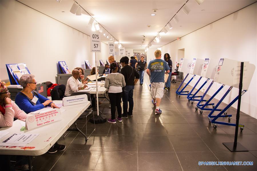 Electores se registran para obtener sus boletas en un centro de votación en el Museo Brooklyn, en Brooklyn, Nueva York, Estados Unidos de América, el 19 de abril de 2016. Las elecciones primarias presidenciales en Nueva York comenzaron el martes. Los candidatos por el Partido Demócrata, Hillary Clinton y Bernie Sanders y los aspirantes a la candidatura presidencial por el Partido Republicano Donald Trump y Ted Cruz, contenderán para apropiarse a los 291 delegados demócratas y los 95 republicanos respectivamente. (Xinhua/Li Changxiang)