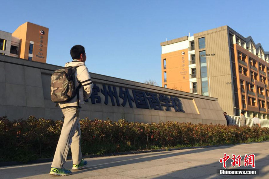 Un estudiante camina hacia la puerta principal de la escuela. El Ministerio de Protección del Medio Ambiente ha enviado a un equipo para determinar si los altos niveles de contaminantes como el clorobenceno son la causa de los problemas de salud de los estudiantes. [Foto/chinanews.com]