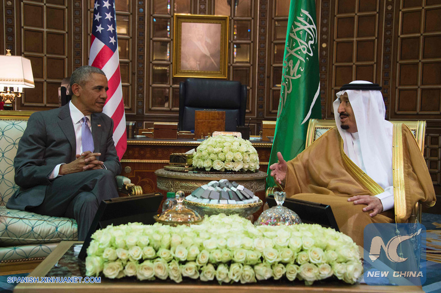 RIAD, 20 abr (Xinhua) -- El presidente de Estados Unidos, Barack Obama, se reunió hoy con el rey de Arabia Saudí, Salman bin Abdulaziz, en la capital saudí de Riad antes de una cumbre con líderes de países del Consejo de Cooperación del Golfo (CCG).