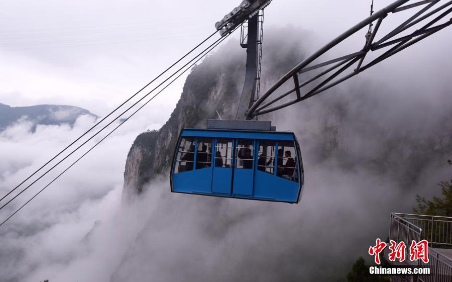 El teleférico Wu Ling Tai Dou, aclamado como el "funicular más empinado de Asia", abrió a los turistas en la monta?a Wuling, en la provincia de Chongqing. Durante el ascenso, su pendiente mide 42,6 grados.