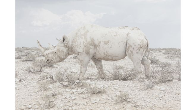 Un rinoceronte se confunde con el paisaje