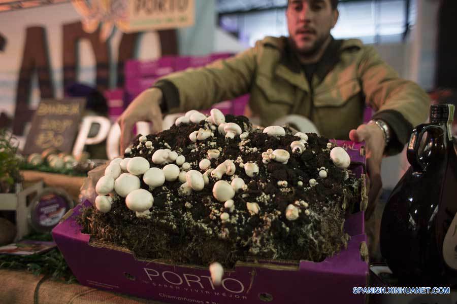 Un empleado manipula una caja con hongos frescos durante la feria gastronómica Masticar 2016, en la ciudad de Buenos Aires, Argentina, el 5 de mayo de 2016. De acuerdo con información de la prensa local, la feria, organizada por la Asociación de Cocineros y Empresarios Ligados a la Gastronomía Argentina (ACELGA) y visitada por más de 100,000 personas, ofrece productos, menús económicos, charlas y cursos de renombrados chefs. (Xinhua/Martín Zabala)